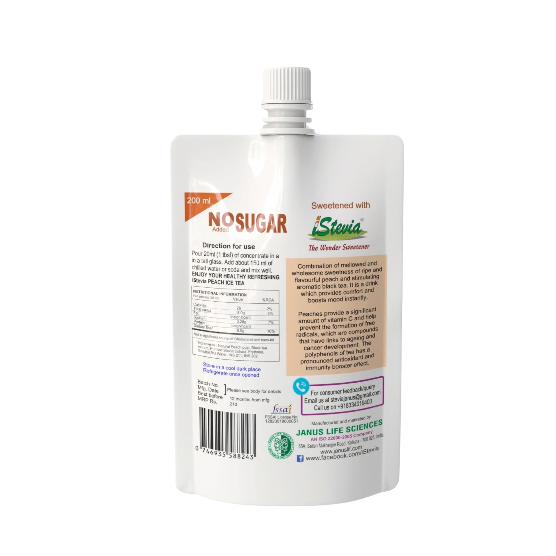 - iStevia's Peach Iced Tea is available in 200ml DOY pack and in 1 ltr and 5 ltrs food grade container