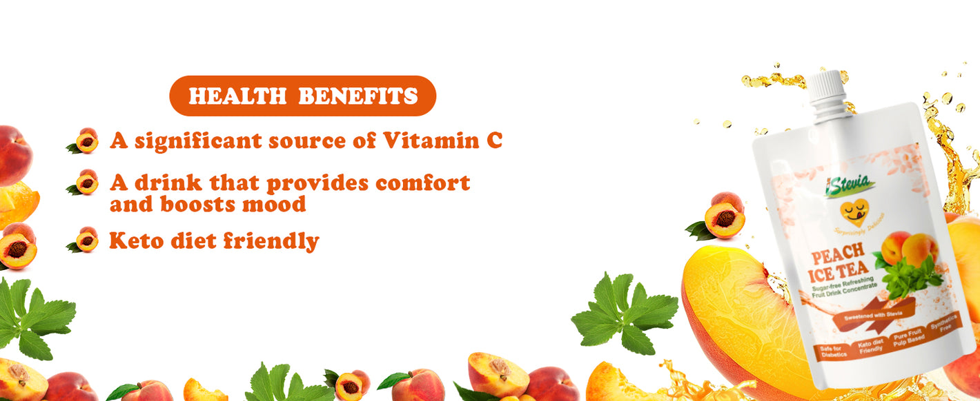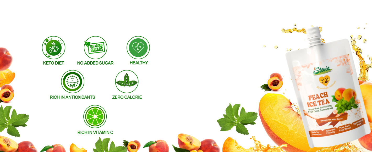 - iStevia's Peach Iced Tea has a low glycemic index and is safe to drink for people (including diabetics) of all ages, and is KETO friendly