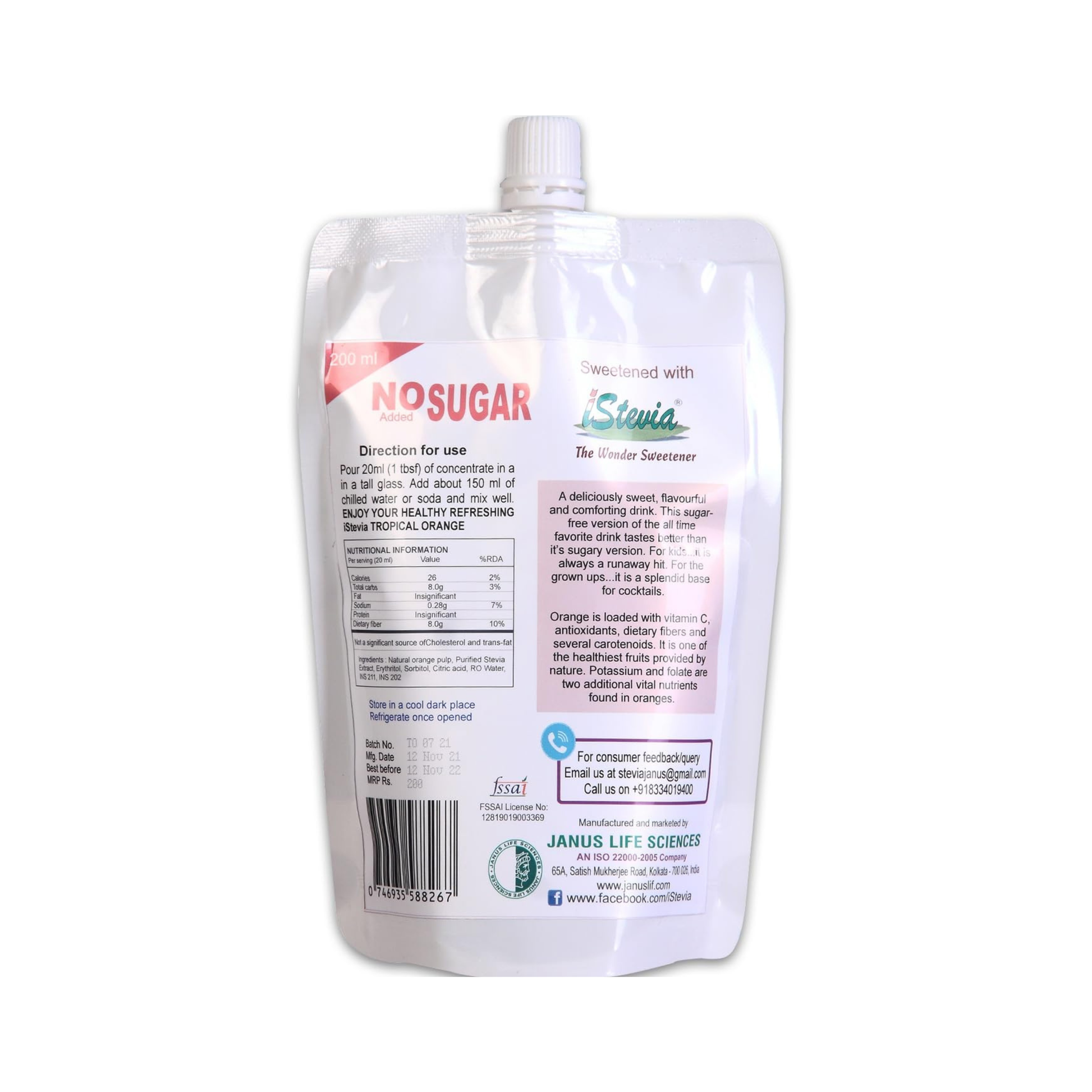 - iStevia's Tropical Orange is available in 200ml DOY pack and in 1 ltr and 5 ltrs food grade container